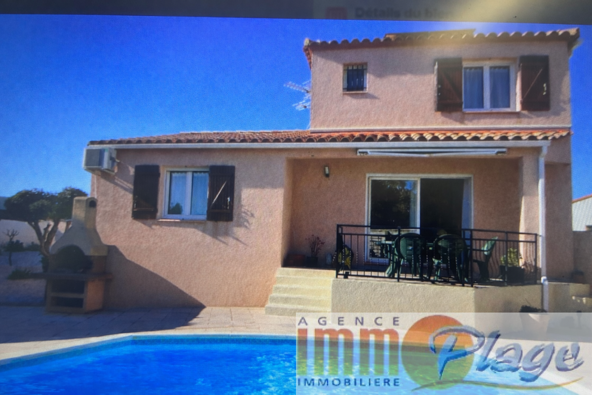 Situé au calme dans un lotissement résidentiel, villa de construction traditionnelle de 2002 en 4 faces avec garage. Le bien dispose de la climatisation et de 8 panneaux solaires, de 2 chambres en rdc 13.80m2 et 10.92m2) et salle d'eau. Le salon et la salle à manger sont ouverts sur une terrasse avec accès à la piscine, cuisine US, buanderie et 2 chambres à l'étage avec salle de bains. Le jardin est arboré et bien exposé... à 5 mn à pied du centre et des commerces. Calme assuré, à visiter sans tarder!